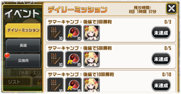 イベント限定キャラはイベント限定ミッションをクリアするとメダルがもらえますので収集して昇級させましょう。