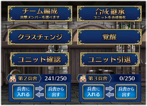 第2兵舎、第3兵舎まで購入可能で、1つの兵舎に250ユニットを収納できます。