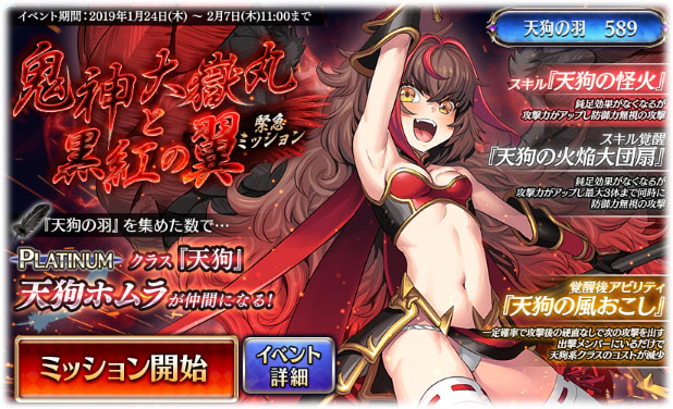 緊急ミッション「鬼神大嶽丸と黒紅の翼」の攻略状況