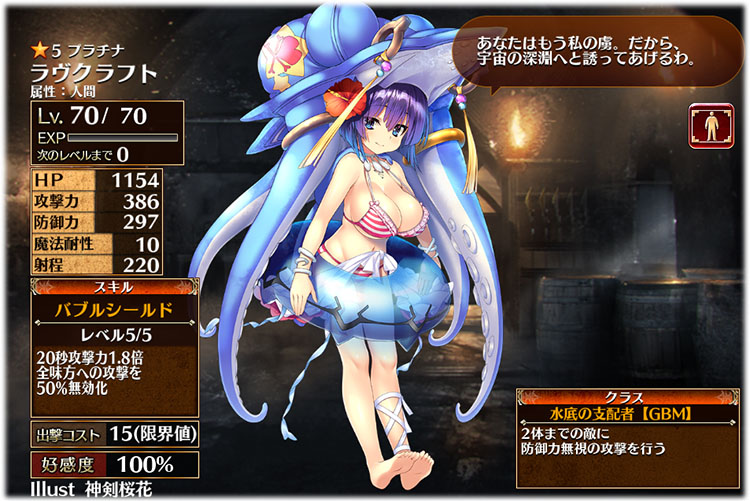 今回は千年戦争アイギスとガールズ・ブック・メイカーのコラボ企画で登場した「ラヴクラフト」の性能についてまとめました。