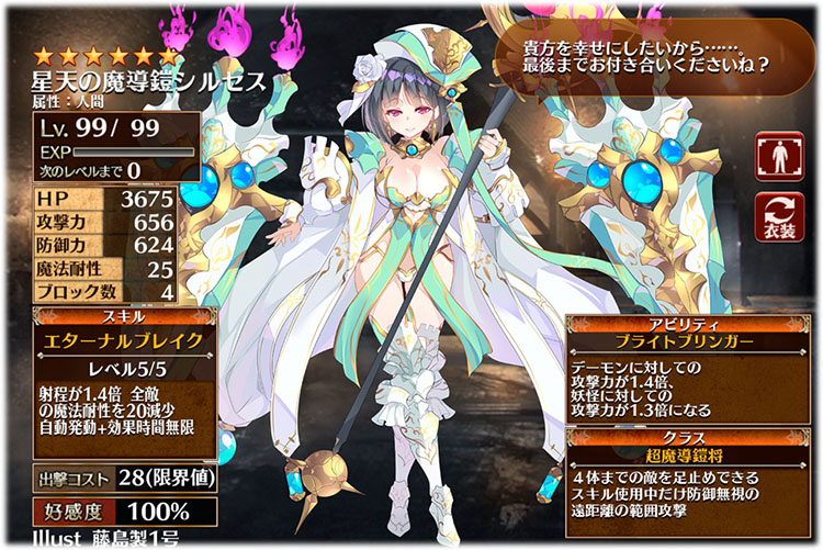 2017年3月30日のアップデート時に実装されたブラックレアリティのメイジアーマークラス女性ユニットです。