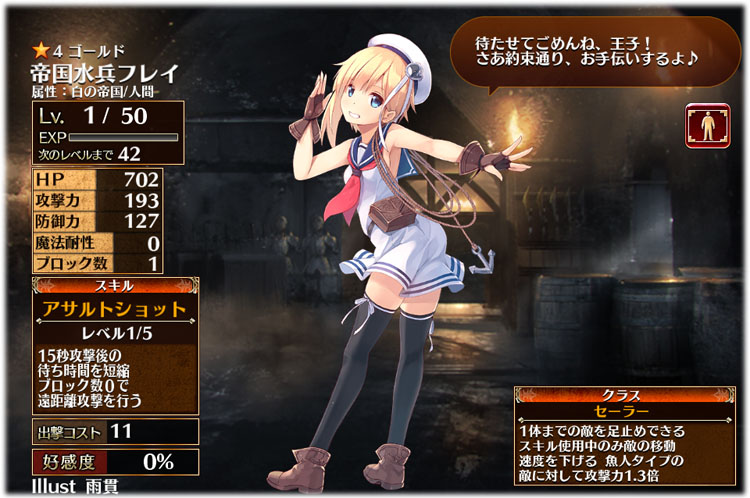 アイギス:帝国水兵フレイの初期クラスはセーラー
