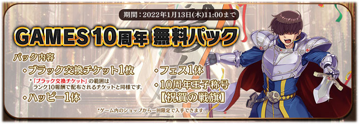 ※「GAMES 10周年 無料パック」はショップにて受け取る必要がございます。