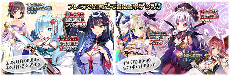 ※今回のプレミアム召喚2は、4月4日(月)0:00 〜 4月7日(木)11:00 の開催となります。