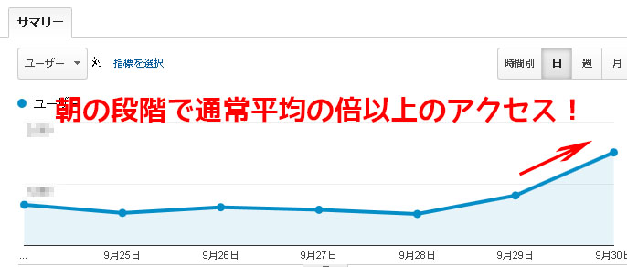 朝の段階で既に1週間の平均数を超えるアクセスが!!