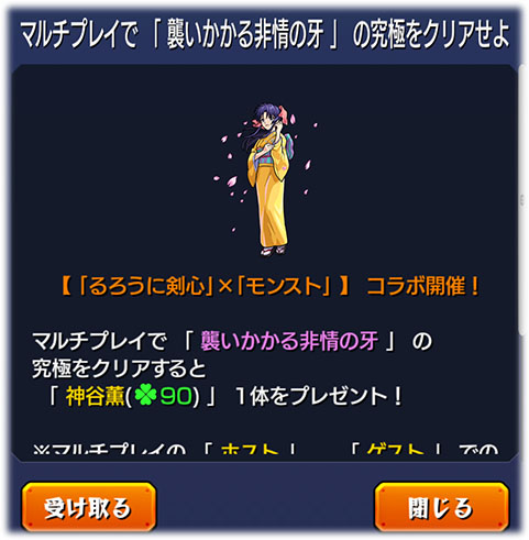 コラボガチャでは剣心・左之助・比古清十郎が出現!